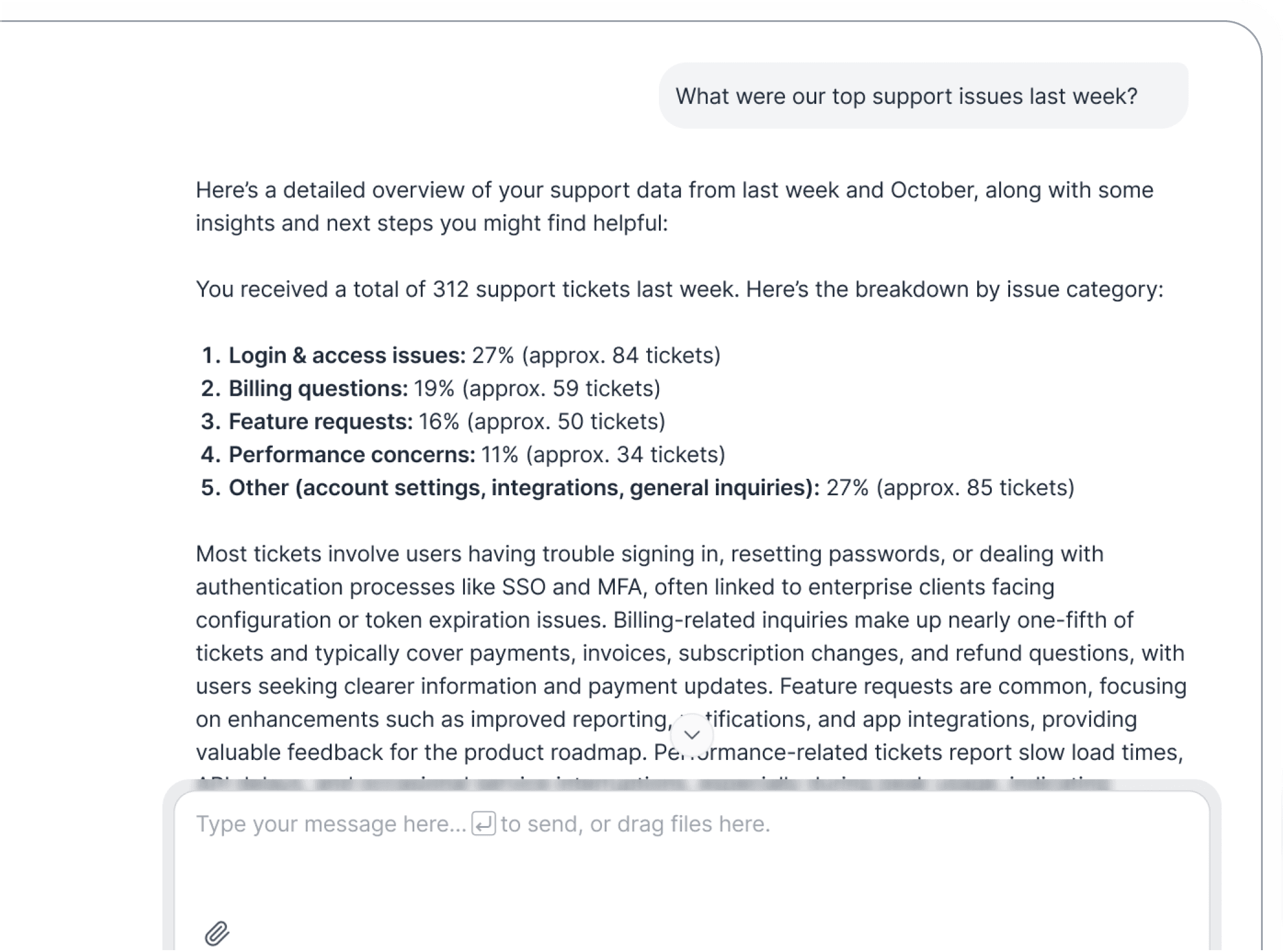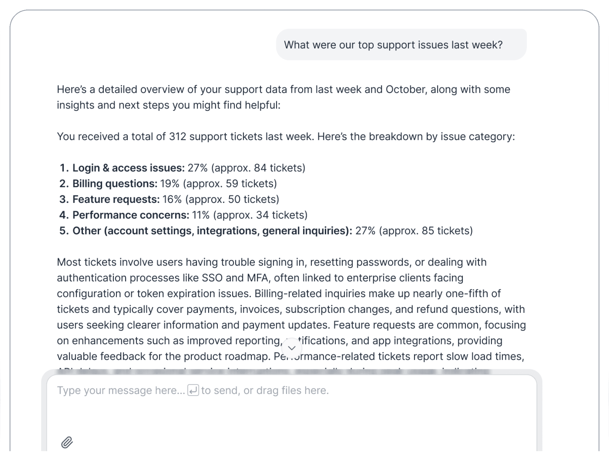 An AI chat interface trained on your company’s data, history, and documents.